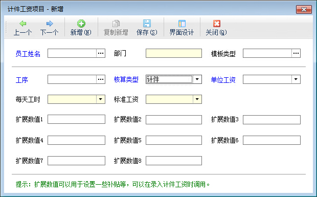計件工資管理,可以快速錄入計件模板內容或直接新增員工計件工資
