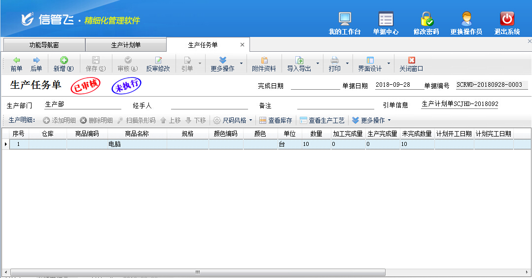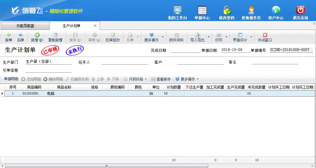 生產計劃單,用于管理工廠的生產指標和生成任務計劃,通過生產計劃單可以使生產活動有計劃、有步驟的進行。
