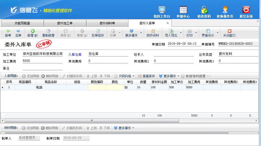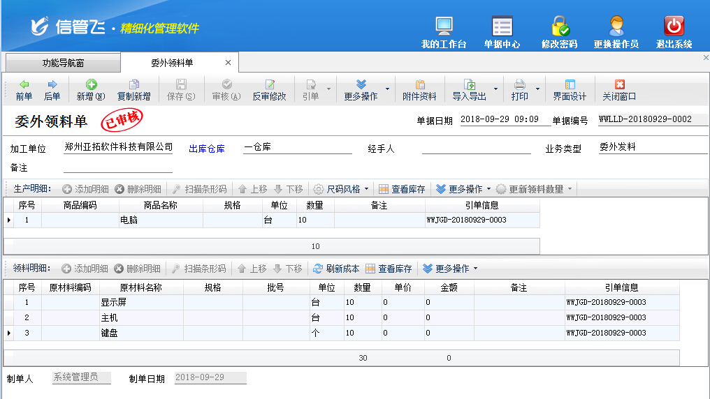 委外加工管理擴(kuò)展功能模塊的典型功能截圖如下: