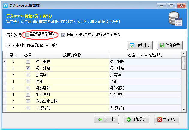 導(dǎo)入失敗,數(shù)據(jù)內(nèi)容重復(fù):這種情況是因?yàn)檐浖鶕?jù)條件判斷相應(yīng)的記錄在數(shù)據(jù)庫中已存在(一般根據(jù)名稱,如商品名稱、姓名、客戶名稱、供應(yīng)商名稱等),如果確實(shí)需要導(dǎo)入,可以取消下圖中的選項(xiàng),重新導(dǎo)入: