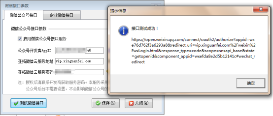 ????在功能導航窗選擇“擴展應用”—》“微信參數(shù)設置”,選擇“微信公眾號接口”,啟用并配置相關設置。然后點擊測試微信接口。如下圖所示:
