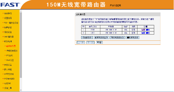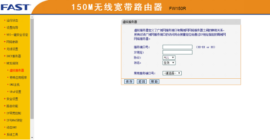????①如果主機電腦是通過路由器上網(wǎng),就需要在路由器上配置端口映射。(這一步驟需要對路由器進行配置,圖1和圖2為迅捷FAST 150M路由器的設置方法。每種路由器的配置稍有不同,可在購買動態(tài)IP解析服務后,聯(lián)系我們客服幫助進行遠程配置)