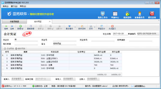 ????亞拓管理軟件專業(yè)版包含的有財務(wù)處理模塊,其中結(jié)轉(zhuǎn)損益是指在期末,將損益類科目的余額全部結(jié)轉(zhuǎn)到“本年利潤”中,并生成相應(yīng)的會計憑證,結(jié)轉(zhuǎn)后,損益類科目余額為零的過程。本篇文章我們來介紹一下結(jié)轉(zhuǎn)損益功能如何使用?