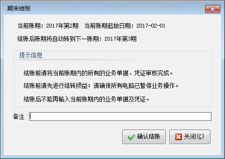 ????2、結(jié)賬前請先在本賬期內(nèi)進(jìn)行“結(jié)轉(zhuǎn)損益”操作。