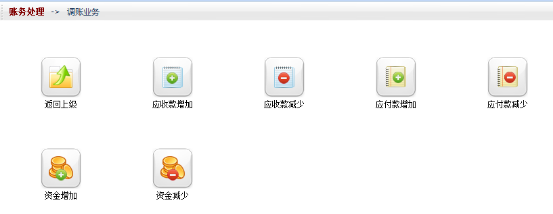 ????在功能導(dǎo)航窗,點“財務(wù)處理”—》“調(diào)賬業(yè)務(wù)”功能組,然后進(jìn)入調(diào)賬業(yè)務(wù)管理功能,如圖1所示。