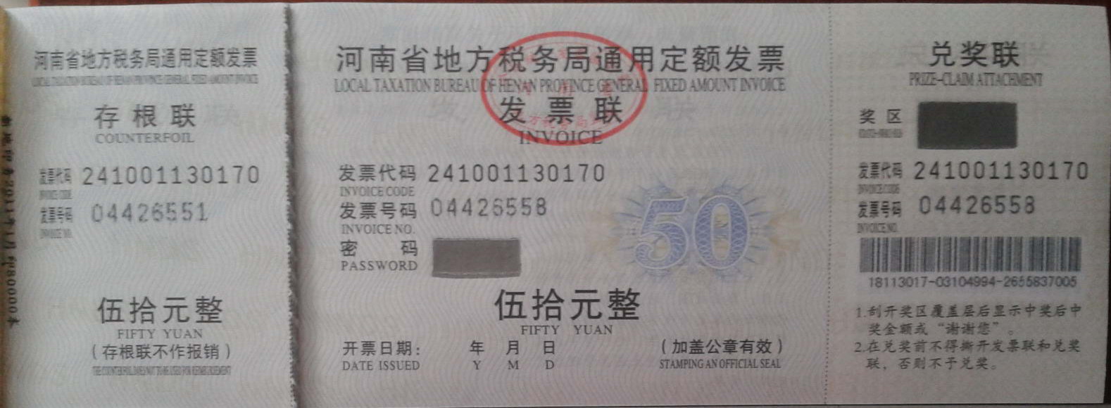 我公司目前針對非項目類產品銷售統一開具《河南省地方稅務局通用定額發票》,發票面值為100元/50元/10元,2011年4月前有少量《河南省鄭州市文化體育娛樂服務業定額》發票,發票面額為200元/100元/10元,均為正規發票,對我公司任何違規開票行為,用戶可隨時撥打河南省地方稅務局服務熱線12366-2進行舉報和投訴。
