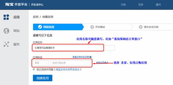 應用名稱:這個可以任意填寫,比如“藍風箏網店的訂單接口”。