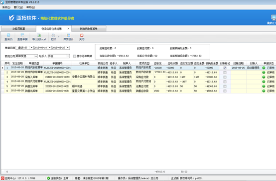 亞拓管理軟件支持物流代收功能,同時也可以進行物流代收結算以及對物流公司進行往來對賬。物流代收結算實現對銷售業務中我們委托物流代收金額的付款結銷,針對的結算對象為物流快遞公司,結銷后相應應收款的結銷狀態將發生變化。亞拓管理軟件物流代收功能使用步驟如下: