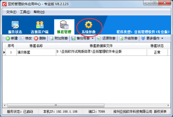 亞拓軟件采用新架構技術開發的進銷存管理軟件庫存管理軟件亞拓管理軟件亞拓倉庫管理軟件都包括應用中心及客戶端程序,“應用中心”是系統的管理控制中心,集中管理連接客戶端和賬套數據庫,從而實現數據的集中存儲和實時共享,應用中心主要包括運行狀態管理、連接客戶端管理、賬套管理、系統參數設置以及其他管理功能。