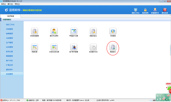 為防止用戶(hù)電腦硬盤(pán)出現(xiàn)故障或者是用戶(hù)的操作系統(tǒng)因計(jì)算機(jī)故障或者是人為誤刪系統(tǒng)組件等原因而造成的操作系統(tǒng)不能正常使用繼而影響軟件的正常運(yùn)行,造成數(shù)據(jù)丟失等情況,我們建議您可以定期對(duì)賬套進(jìn)行備份并保存,且同時(shí)在U盤(pán)或者是其他硬盤(pán)上進(jìn)行二次備份,以便電腦操作系統(tǒng)或者是賬套出現(xiàn)問(wèn)題的時(shí)候可以從賬套備份文件中恢復(fù)數(shù)據(jù),下面我們以亞拓管理軟件專(zhuān)業(yè)版為例詳細(xì)介紹下如何在進(jìn)銷(xiāo)存管理系統(tǒng)中對(duì)賬套進(jìn)行備份。