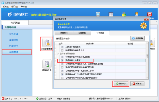 以紅管家送貨單為例,來說一下如何設置商品規格為計量值,首先設置一下系統參數,勾選上“商品規格為計量值”的參數設置,具體設計步驟如下圖所示: