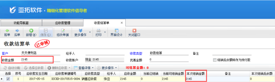 在“應(yīng)收款管理”中選擇應(yīng)收款,點(diǎn)擊“收款結(jié)算”進(jìn)入收款結(jié)算單界面,本次結(jié)銷(xiāo)金額和收款金額輸入一致,點(diǎn)擊“保存”則應(yīng)收款正常結(jié)銷(xiāo)。如下圖1、圖2所示: