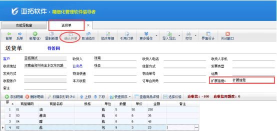 亞拓軟件下的送貨單軟件亞拓管理軟件等最新版本增加在明細列表中可以顯示單據主體項的擴展信息。我們以送貨單軟件為例,示范下如何設置在送貨單的明細對賬單上顯示單據主體的擴展信息?