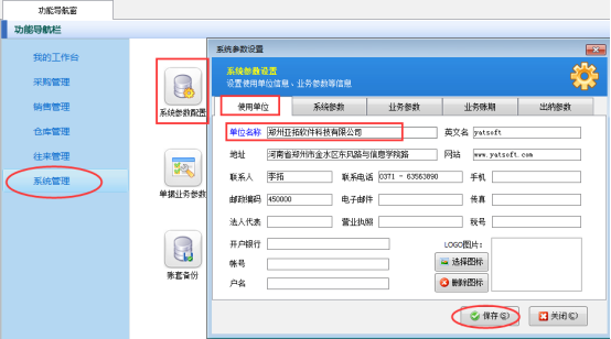 修改使用單位名稱,需在功能導航窗選擇系統(tǒng)管理—》系統(tǒng)參數(shù)配置—》使用單位信息中修改后保存即可。如下圖2所示:
