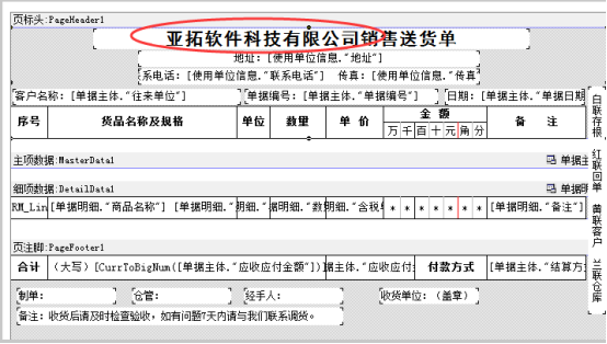 亞拓軟件旗下的紅管家送貨單軟件、亞拓管理軟件、倉庫管理軟件等支持打印單據(jù)。軟件中有內(nèi)置十幾種打印模板。內(nèi)置打印模板的單位名稱自動調(diào)取系統(tǒng)管理中“系統(tǒng)參數(shù)配置”界面的使用單位信息。對于自定義設計的打印模板,有的客戶是直接在打印模板中輸入的單位名稱。所以需要修改使用單位之前可以先看下打印模板中的調(diào)用數(shù)據(jù)項。