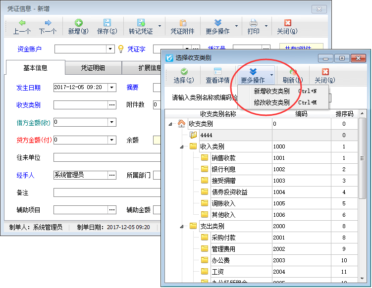 新增憑證時在“選擇收支類別”窗口可新增、修改收支類別,但是此界面不支持刪除收支類別(如下圖一所示),部分用戶會問到如何刪除收支類別,本篇文章我們以出納記賬軟件專業(yè)版為例來詳細(xì)介紹一下出納記賬軟件中如何維護(hù)收支類別?