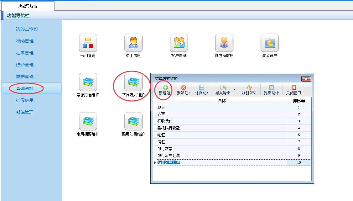 1、可以在基礎資料里面維護銀行日記賬結算方式
