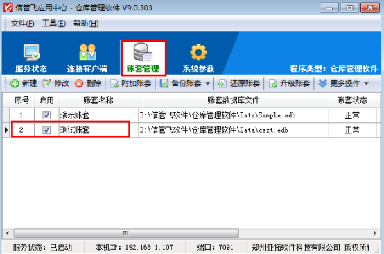 信管飛倉庫管理軟件如何新建和選擇賬套?
