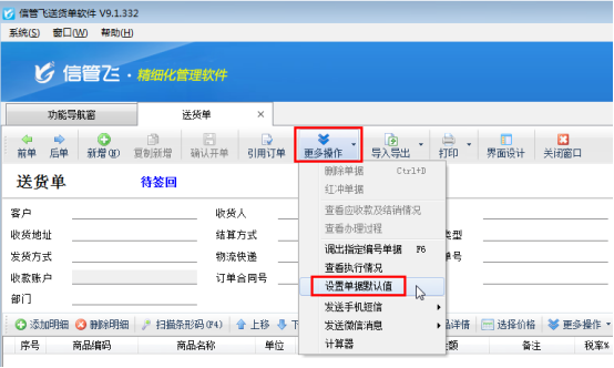 下面我們以信管飛送貨單軟件為例詳細介紹下如何設(shè)置單據(jù)默認值。