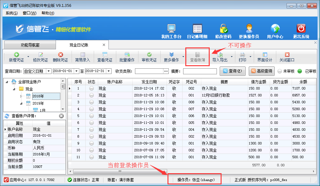 信管飛出納記賬軟件內包含豐富的記賬統計表格,如現金賬簿、銀行賬簿、資金日(月)報表、收支類別匯總表等。如果不希望員工賬號登錄后查看到這些報表,如何設置呢?本篇文章以信管飛出納記賬軟件專業版為例演示一下出納記賬軟件內如何設置操作員不可查看現金及銀行賬簿。