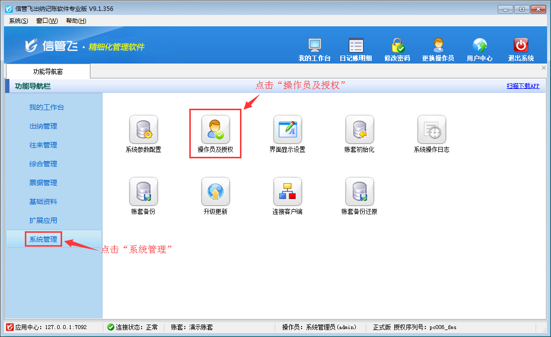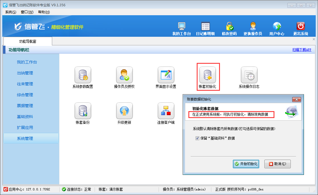 執(zhí)行賬套初始化操作后,會刪除賬套內(nèi)相應(yīng)的數(shù)據(jù),因此務(wù)必提前做好備份,謹(jǐn)慎操作!為了避免操作員誤操作,導(dǎo)致數(shù)據(jù)丟失,軟件內(nèi)支持設(shè)置操作員不可進(jìn)行賬套初始化操作,下面以信管飛出納記賬軟件專業(yè)版為例來演示一下具體的操作步驟。