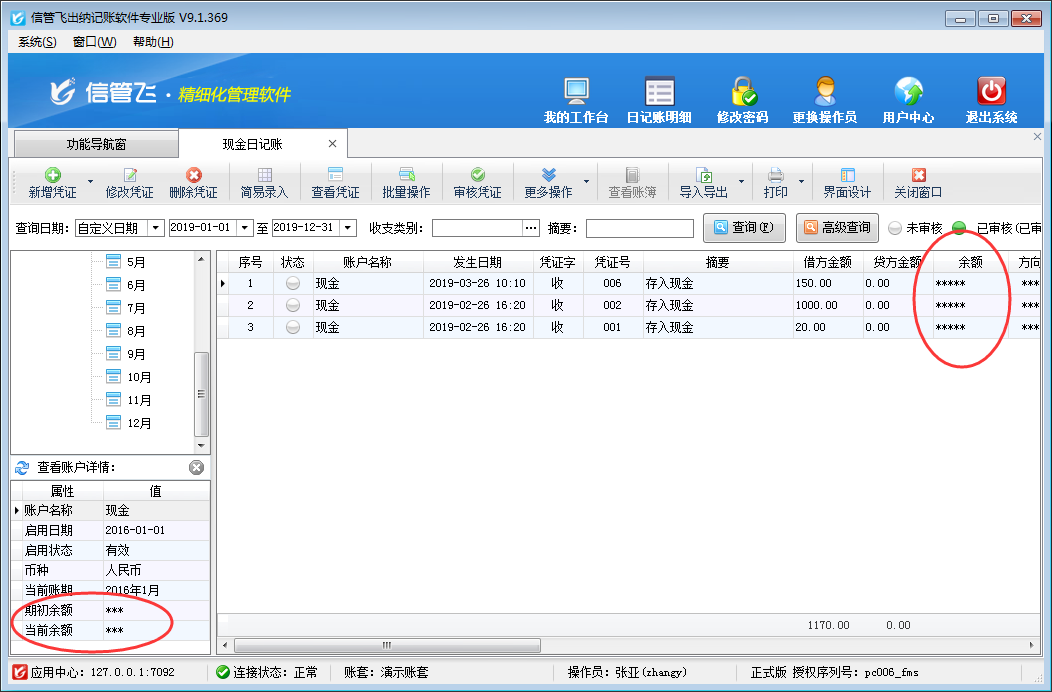 歡迎免費下載試用這款可以設置操作員不可查看出納日記賬資金賬戶余額的流水賬記賬軟件:信管飛出納記賬軟件。