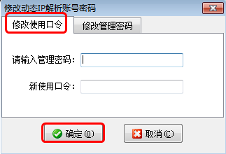 在修改密碼窗口,點擊“修改管理密碼”頁面,輸入當(dāng)前密碼、新密碼、確認新密碼后,點擊“確定”按鈕,就可以修改動態(tài)IP解析服務(wù)的管理密碼。如下圖3所示: