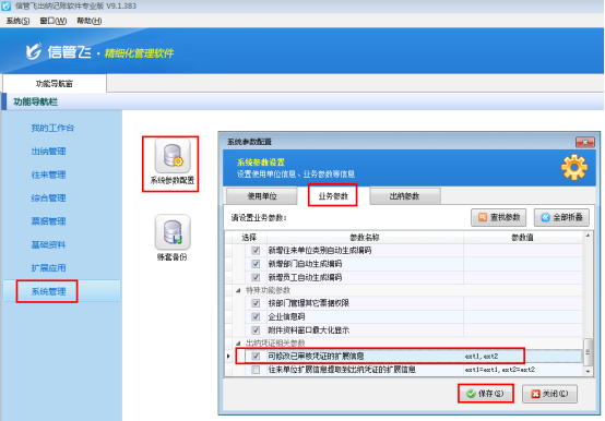 信管飛出納記賬軟件中不可以直接修改已審核憑證的擴展信息,下面我們介紹一下如何啟用可修改已審核憑證的擴展信息功能。