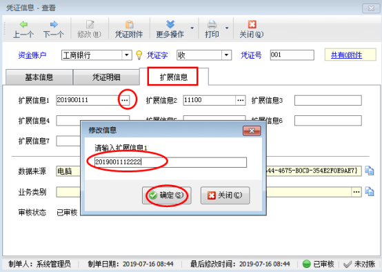 啟用可修改已審核憑證的擴展信息功能后,有權(quán)限的操作員才可以使用此功能。