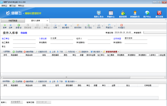 (2)當需要加工廠進行加工時,開“委外加工單”錄入加工任務,會根據生產模板自動算出需要的原材料明細。