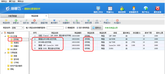 然后到“打印機”類別下從新查看商品信息,剛才的4個商品類別都已經改變了,其界面如圖3所示。