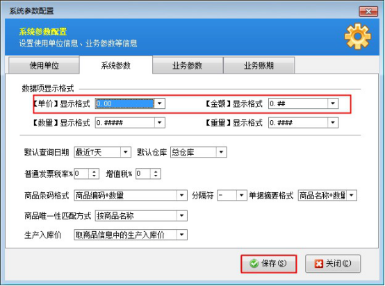 在系統(tǒng)參數(shù)中對“單價”、“金額”選擇相應(yīng)的顯示格式后點擊“保存”按鈕即可,在軟件中這些數(shù)據(jù)項的顯示格式會改變。如圖3所示設(shè)置后,在圖4的送貨單界面可看到相應(yīng)的數(shù)據(jù)項的顯示格式。