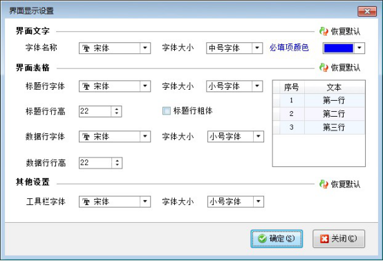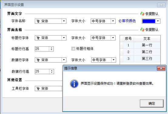 界面風(fēng)格中可調(diào)整標(biāo)題行行高和數(shù)據(jù)行行高,字體顯示大小也可以進(jìn)行修改。修改后重新登錄軟件會變?yōu)樾薷暮蟮娘@示,下圖為修改后顯示: