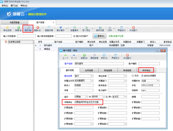 信管飛送貨單軟件、信管飛倉庫管理軟件、信管飛RMS開單時都可以錄入多個收貨地址,以滿足部分客戶有多個收貨地址的情況。下面我們以信管飛RMS為例介紹一下錄入多個收貨地址的具體的操作步驟。