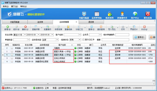 信管飛送貨單軟件是集送貨單、退貨單、應收款管理、對賬單一體的送貨軟件,軟件針對客戶送貨后出現退貨情況,軟件中對此客戶的實際收款該如何處理?本文以“信管飛送貨單軟件”為例,示范下送貨單軟件中如何管理退貨以及沖抵應收款操作。