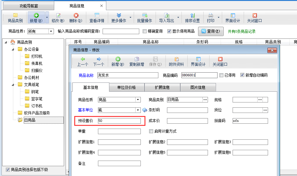 信管飛RMS、信管飛送貨單軟件等都支持開單前錄入好商品的預設價格,如預設采購價、預設售價等,方便開單選擇商品時自動獲取價格信息。如下圖所示,設置商品“洗發水”預設售價50元/瓶,以送貨單軟件為例示范一下如何設置新開送貨單時可自動取商品預設售價。