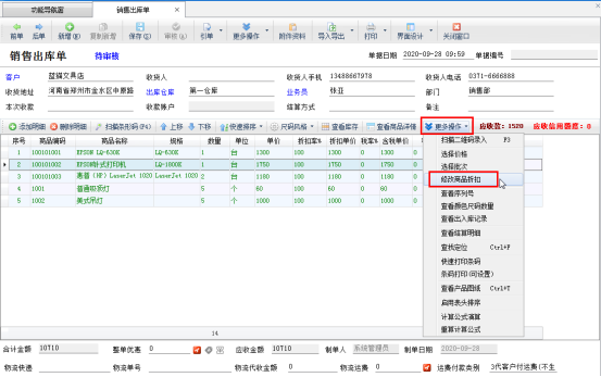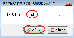 在單據明細上方,點擊“更多操作”—》“修改商品折扣”,彈出修改商品折扣率的窗口,輸入折扣(例如:8折優惠就輸入80),然后點擊“確定”進行保存,如圖2、圖3所示: