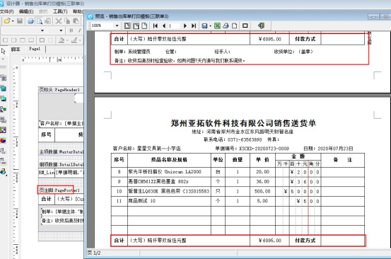 信管飛送貨單軟件、信管飛RMS軟件、信管飛倉庫管理軟件等都支持設計打印模板格式,軟件默認打印模板格式的合計是每頁都顯示,有客戶需要存在打印多頁的情況下,可以把合計放在最后一頁顯示,本文示范下如何修改打印模板合計在最后一頁顯示。
