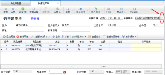 在功能導航窗點擊“銷售管理”—》“銷售出庫單”,開單并保存單據(jù),單據(jù)會直接自動生成一個單據(jù)編號,如下圖1所示: