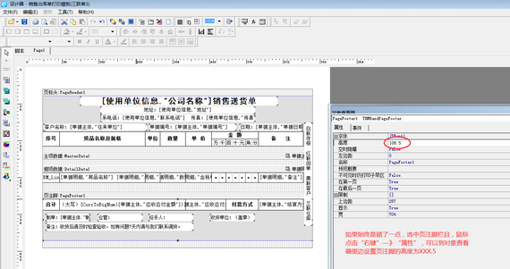 如下圖所示,如果始終是錯了一點(diǎn),選中頁注腳欄目,鼠標(biāo)點(diǎn)擊“右鍵”—》“屬性”,可以到對象查看器里邊設(shè)置頁注腳的高度為XXX.5。