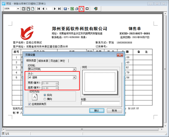 信管飛系列軟件都支持自定義設(shè)計打印模板格式,軟件打印模板格式都有其默認模板大小,有時用戶需要修改此模板大小,該如何修改?本文以“信管飛送貨單軟件”為例示范下如何修改,首先預(yù)覽下當前打印效果上的模板大小,如下圖所示: