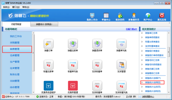 信管飛RMS軟件是集采購管理、銷售管理、往來管理等一體的進銷存軟件。在信管飛RMS軟件中,銷售管理界面可開銷售出庫單對商品銷售出庫。有時客戶需要查詢商品的銷售情況,該如何處理呢?本文以“信管飛RMS專業(yè)版”為例,示范下信管飛RMS軟件如何查詢商品銷售數(shù)量?