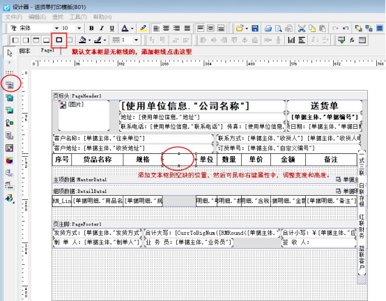 信管飛系列軟件下的信管飛RMS軟件、信管飛送貨單軟件、信管飛倉庫管理軟件等都支持自定義設(shè)計打印模板格式,軟件開單界面支持界面設(shè)計中自定義增加擴展字段,如果在開單界面上增加自定義字段后,打印預覽界面不顯示此數(shù)據(jù),此時需要修改打印格式模板,添加一列明細。以信管飛送貨單軟件為例,示范下如何在打印模板中添加新的明細列?