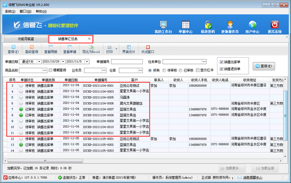 此時,補錄的單據(jù)可以在單據(jù)匯總表中查詢到。另外,重新設置“流水號更新日期”為當前日期2021年11月5日,“當前流水號”為5,點擊“更新”并保存后,即可正常開單,單據(jù)編號流水號依次遞增。