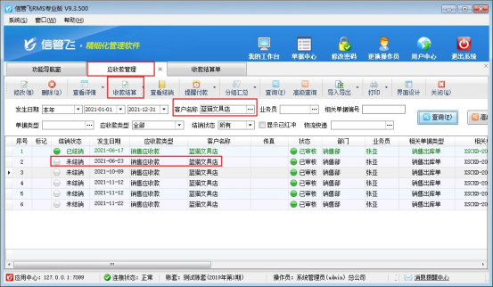 結(jié)算單審核完成后會(huì)影響應(yīng)收款的結(jié)銷(xiāo)狀態(tài)。如果需要按單據(jù)進(jìn)行分批結(jié)銷(xiāo)可參考此文章:信管飛RMS 軟件如何按單據(jù)部分結(jié)銷(xiāo)應(yīng)收款?