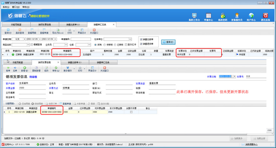 參數(shù)啟用后,可按單據(jù)填開一張發(fā)票,保存后查看相關(guān)單據(jù)開票狀態(tài),還是“未開票”狀態(tài),如下圖所示。