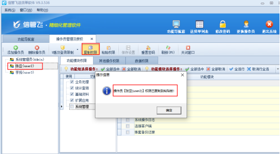 歡迎下載試用可快速復制操作員權限設置的軟件:信管飛送貨單軟件