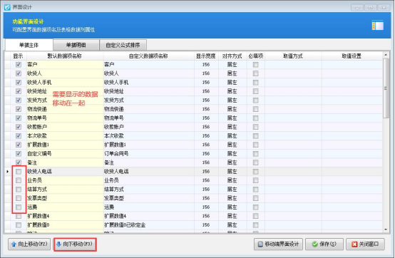 本文以“信管飛送貨單軟件”為例,示范下如何進行調整界面顯示連續(xù),打開單據界面的“界面設計”按鈕,在單據主體配置界面,選擇取消顯示的數據項,點擊“向下移動”到勾選顯示的數據項下方,其他不顯示的一一移動,然后保存界面設計,單據界面單據主體內容已顯示連續(xù),如下圖所示: