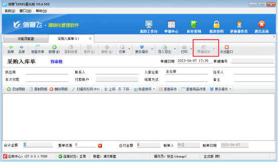信管飛軟件支持增加操作員并且設(shè)置操作員權(quán)限,部分客戶在單據(jù)界面“界面設(shè)計(jì)”配置界面數(shù)據(jù)項(xiàng)時(shí)出現(xiàn)界面設(shè)計(jì)按鈕顯示灰色,無法進(jìn)行界面配置的情況,本文以“信管飛RMS軟件”為例介紹下如何解決這個(gè)問題?