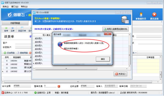 導入過程中軟件會實時顯示導入進度,如果數據量比較大時,導入進度達到100%時軟件進行數據提交會比較耗時。導入結束后,軟件會顯示導入的結果。